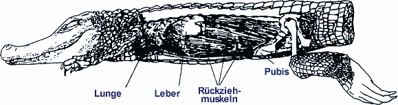 Abb. 5: Anatomische Verhältnisse bei Krokodilen. Näheres im Text. (Nach Ruben et al.1997)