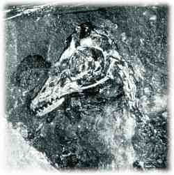 Abb. 3: Fossile Überreste eines Nestlings aus der Unterkreide Spaniens zeigen u. a. "moderne" Merkmale. (Aus Sanz et al. 1997, Abdruck mit freundlicher Genehmigung)