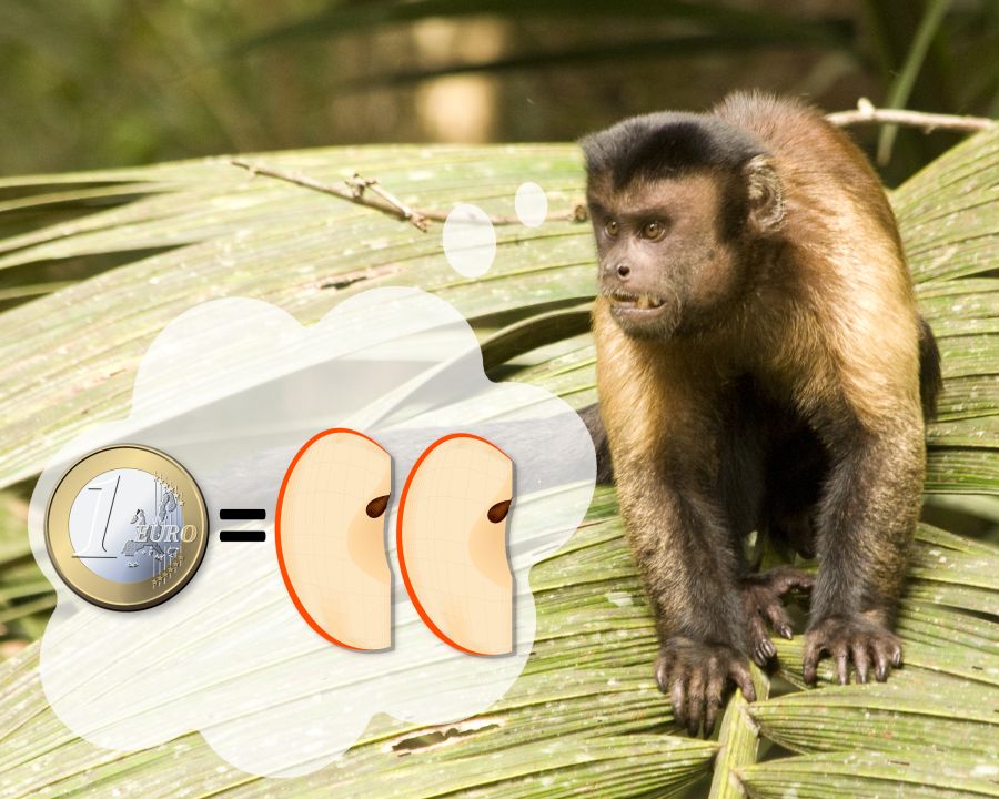 Eine spannende wirtschaftswissenschaftliche Studie von Chen et al. (2006) zeigt: Gehaubte Kapuzineraffen (Cebus apella) verstehen prinzipiell, wie Geld funktioniert.Sechs in Gefangenschaft lebende Kapuzineraffen bekamen Aluminiummünzen ausgeteilt und lernten über einen längeren Zeitraum, dass sie in zwei ans Gehege angeschlossenen Boxen Münzen gegen leckere Nahrungsmittel tauschen konnten.