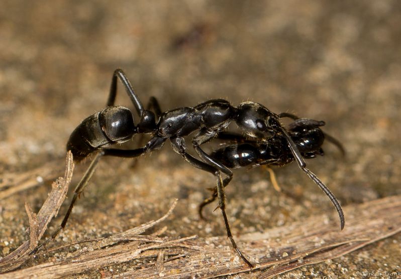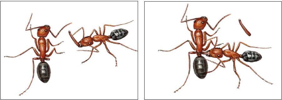 Figure 3. Abb. 3 Megaponeraanalis-Ameise bei der Versorgung der Wunde eines verletzten Artgenossen im Nest. (Erik Frank, ETF89, CC BY-SA 4.0)