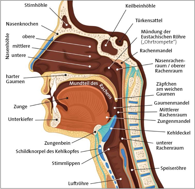 Figure 1. Abb. 1 Details des menschlichen Mundraums und Rachens. (Weiss nach nmfotograf, Adobe Stock)
