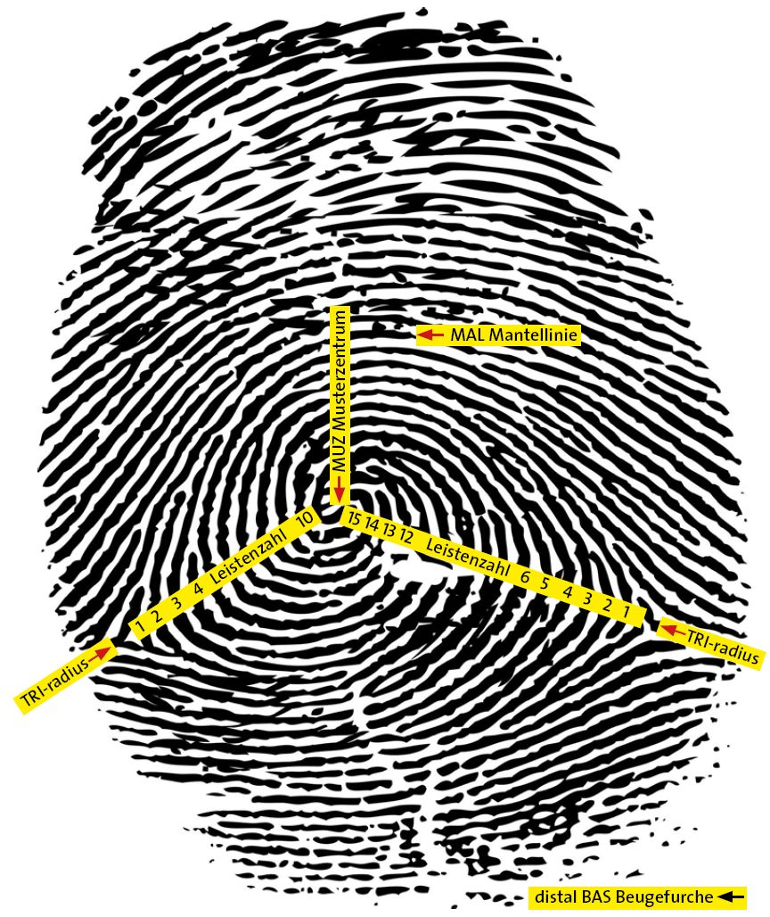 Die Merkmale des Hautleistensystems auf Finger- und Zehenbeeren sowie auf den Hand- und Fußflächen des Menschen sind erstaunlicherweise hochgradig alters- und umweltstabil und weitgehend genetisch festgelegt.